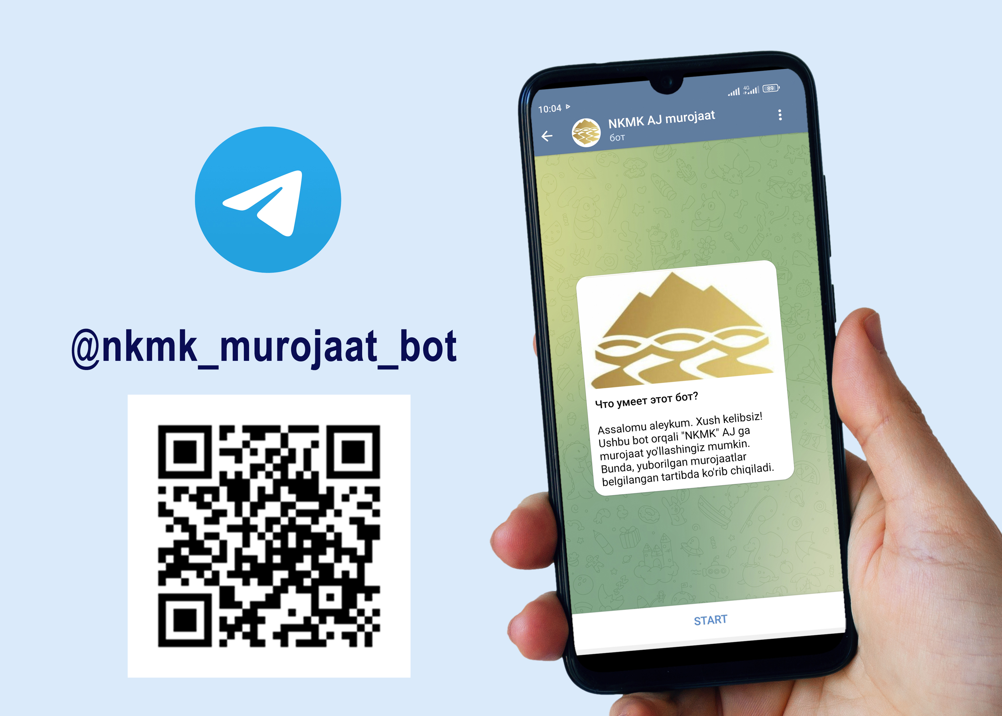 Также вы можете обратиться в Акционерное общество "Навоийский горно-металлургический комбинат" через специальный бот в мессенджере Telegram https://t.me/nkmk_murojaat_bot