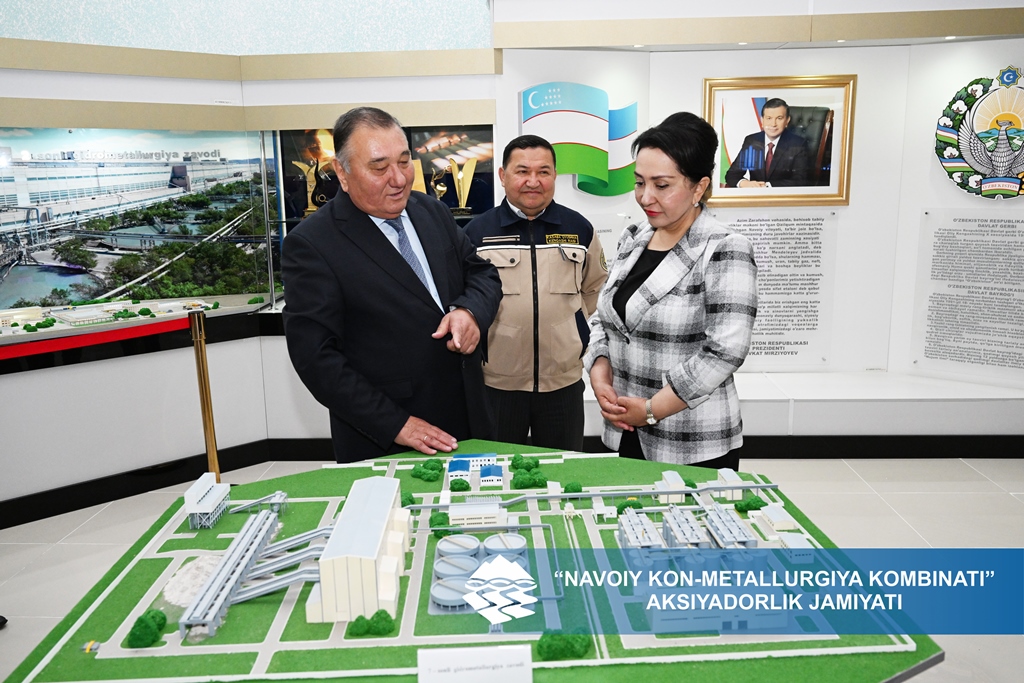 Председатель Сената Олий Мажлиса Республики Узбекистан Танзила Нарбаева в рамках визита в Навоийскую область 12 апреля посетила Акционерное общество «Навоийский горно-металлургический комбинат».