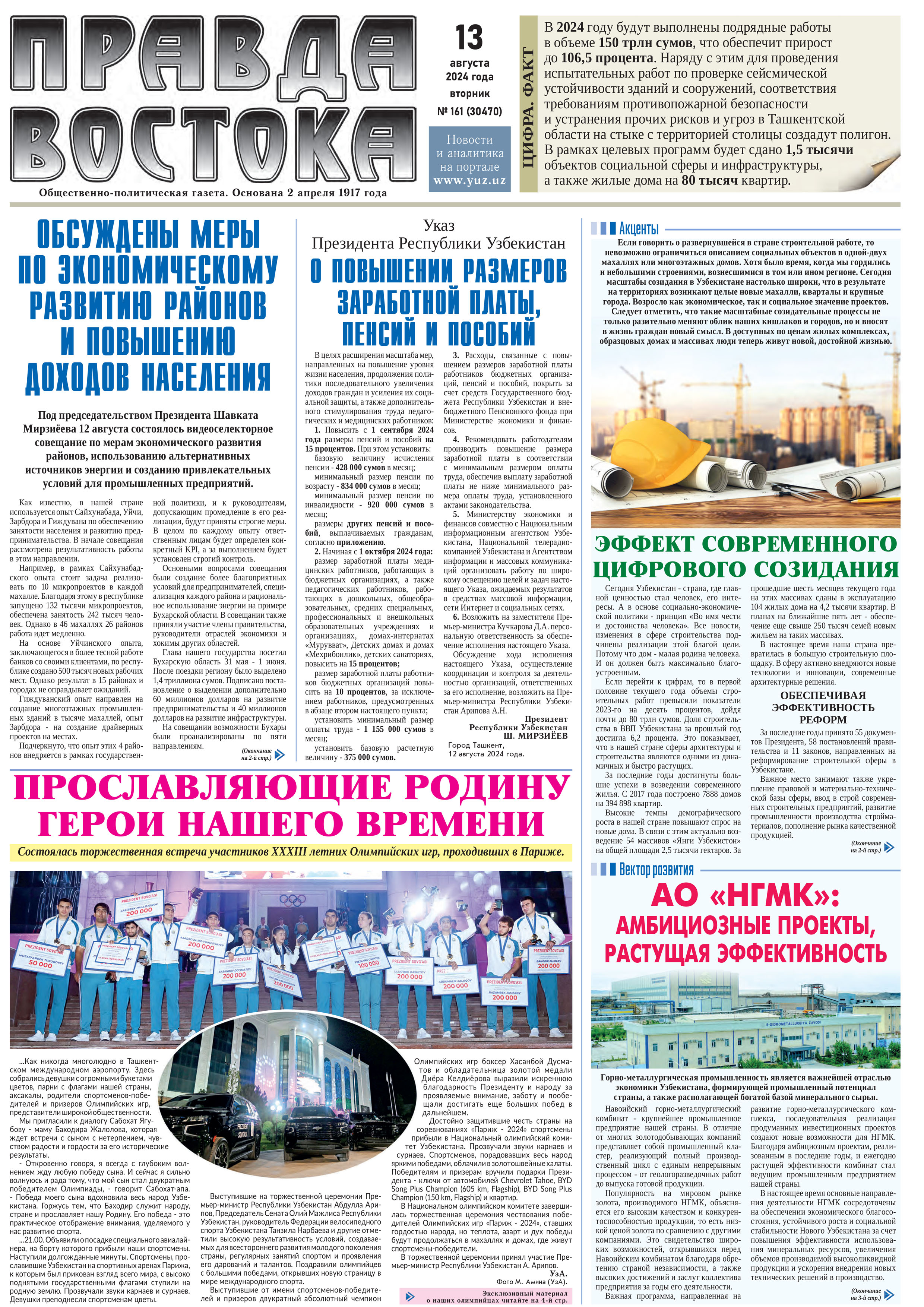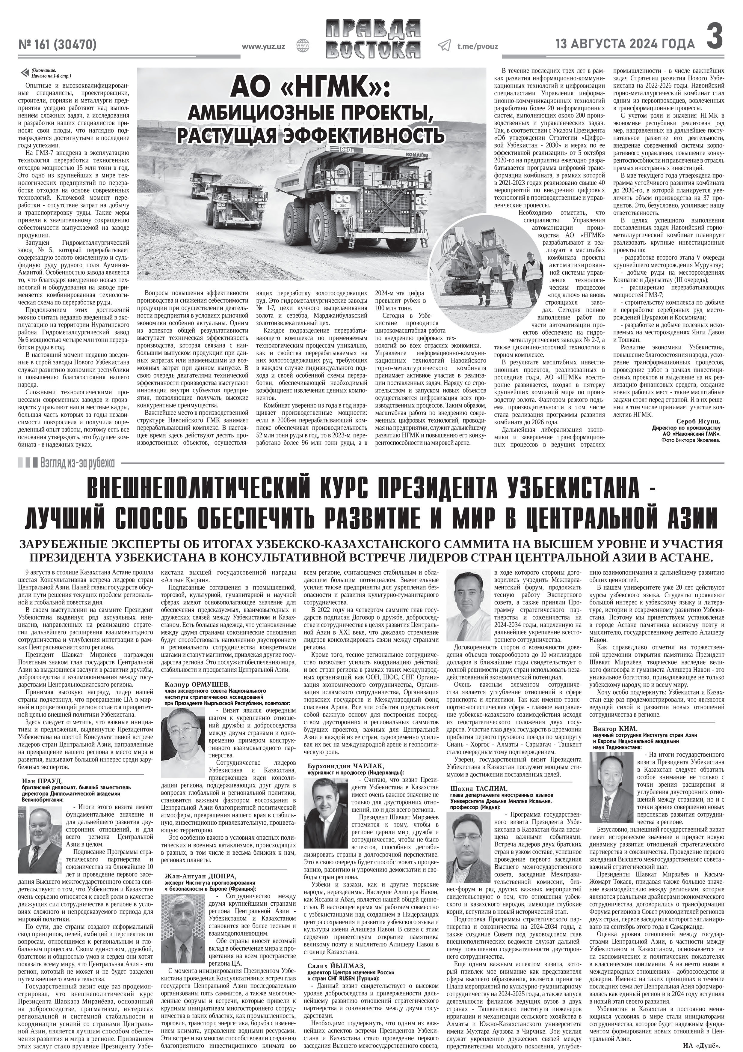 В газете «Правда Востока» (№161 от 13.08.2024 года) под заголовком «АО «НГМК»: амбициозные проекты, растущая эффективность» напечатана статья директора по производству АО «НГМК» Сероба Исунца.