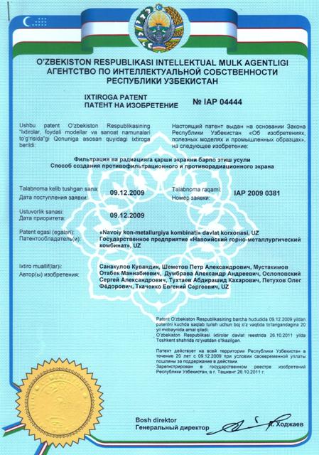 Технология защищена патентом РУЗ IAP 04444. Имеется «ноу – хау».