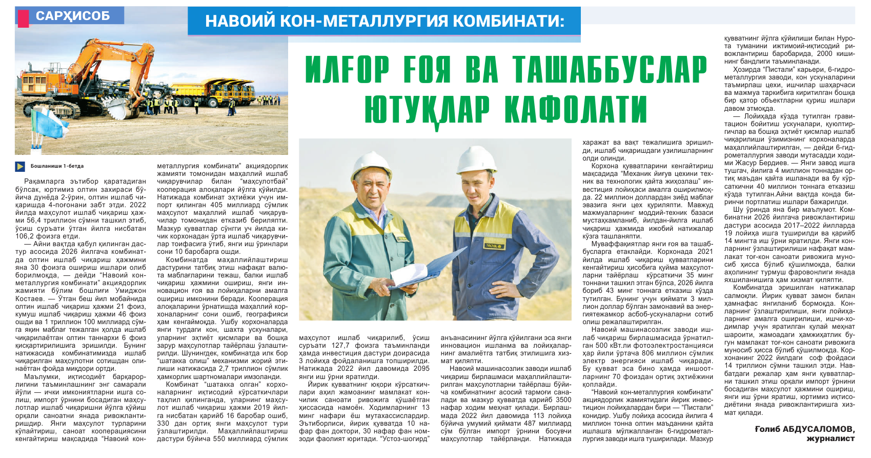 Ilg‘or g‘oya va tashabbuslar yutuqlar kafolati