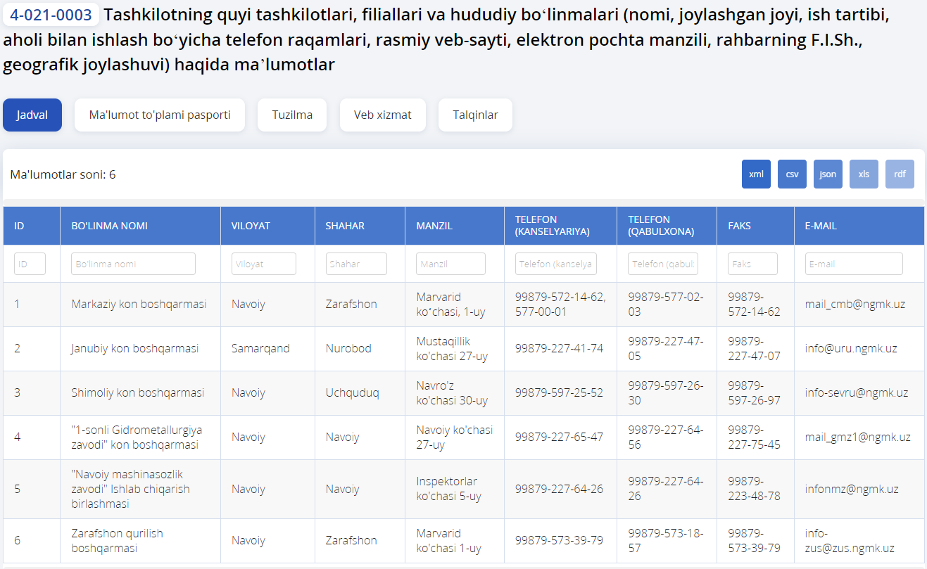 Pochta manzili: 210300, Navoiy viloyati, Zarafshon shahri, Marvarid ko‘chasi, 1-uy
